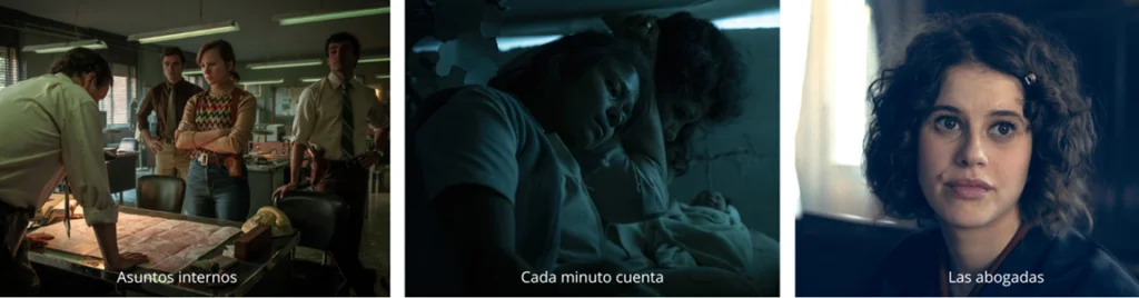 Asuntos internos (RTVE, Mediacrest) es un drama en clave de thriller, ambientado en una comisaría de barrio del Madrid de finales de los años 70, liderado por una de las primeras mujeres policía de España, que se infiltra en una trama para descubrir una red de corrupción vinculada al tráfico de heroína en Madrid.